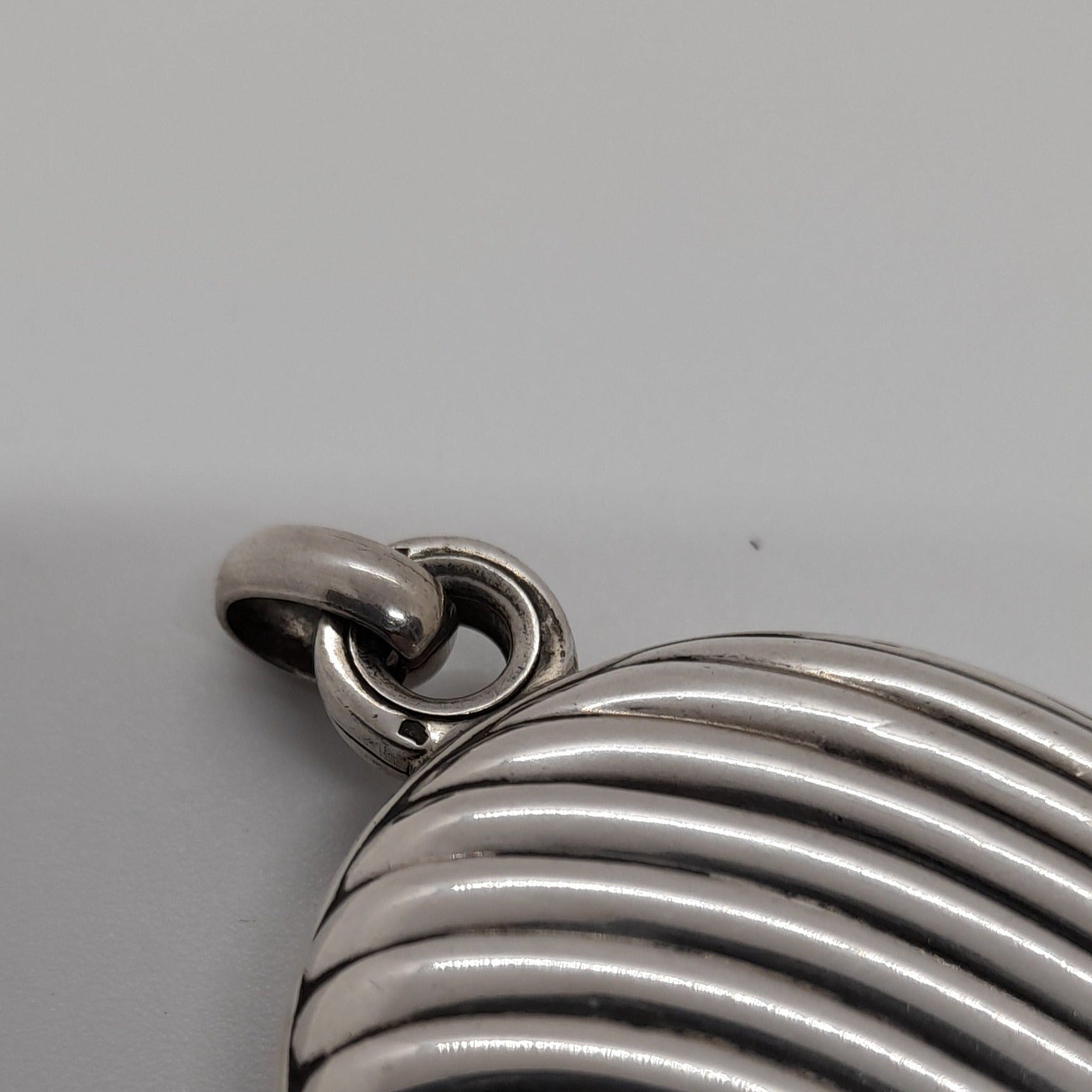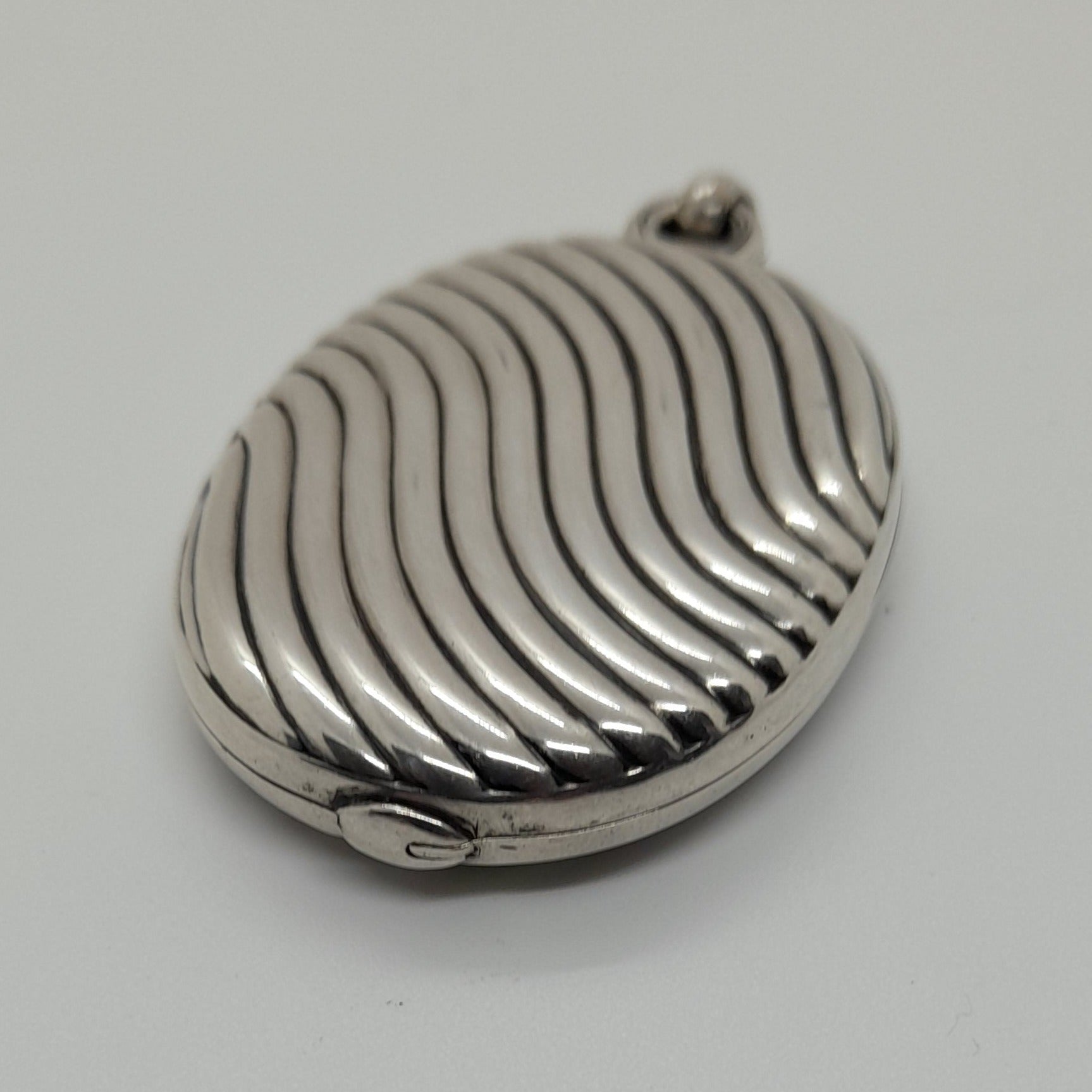 This is a locket from circa 1910. Marked with Austrian hallmarks and is quite rare. What makes this different from the usual is that it opens bt sliding one side from the other. It is big and heavy.Weighs 35.4g and measures 6.3cm/2.5in not including bail.It has all its pieces including the original bevelled glass and retainers. Deeply engraved in a swirl pattern to both sides. I am showing it on a longuard chain that is on the site to show size.It has a mirrored effect on both sides. The chain is not included in the price.
