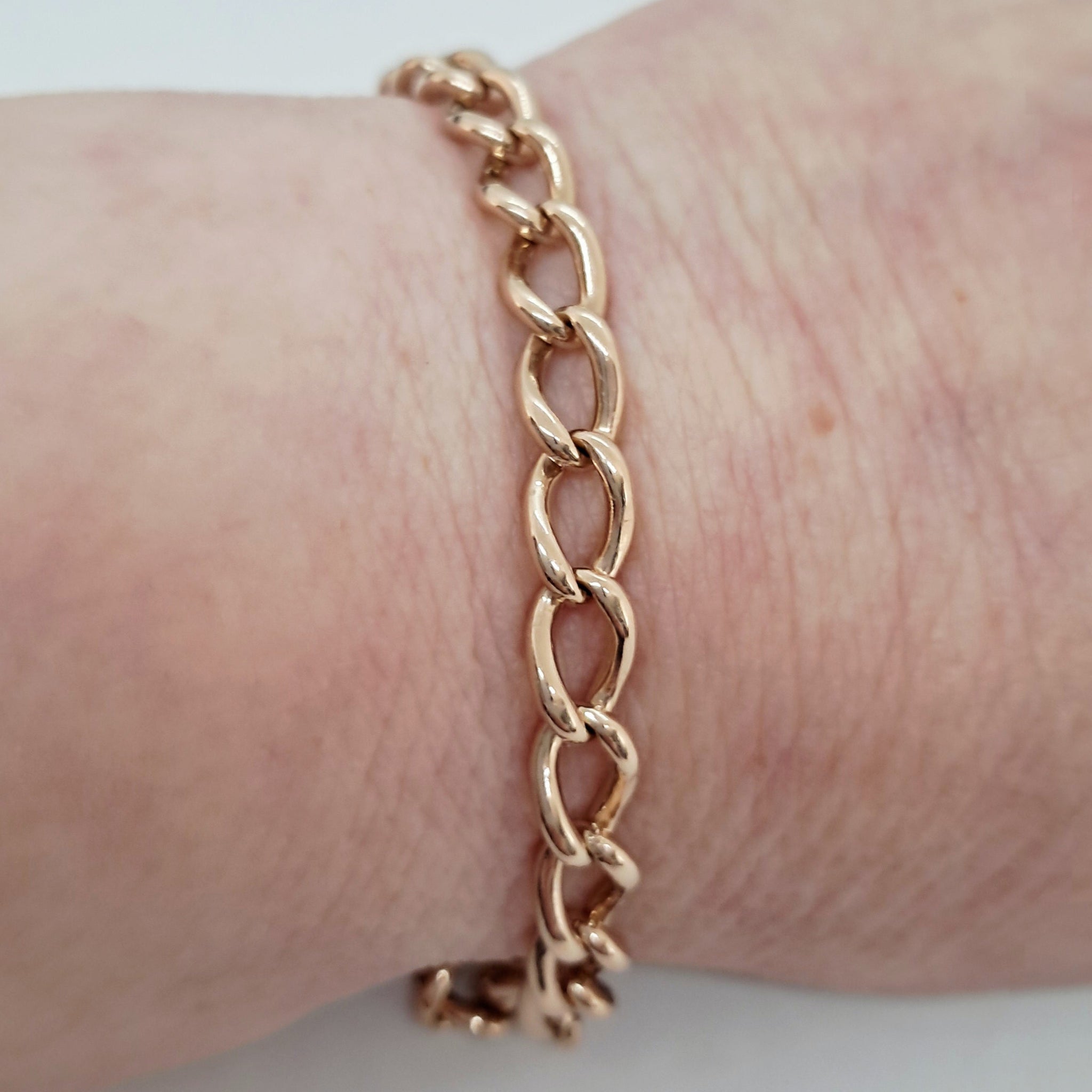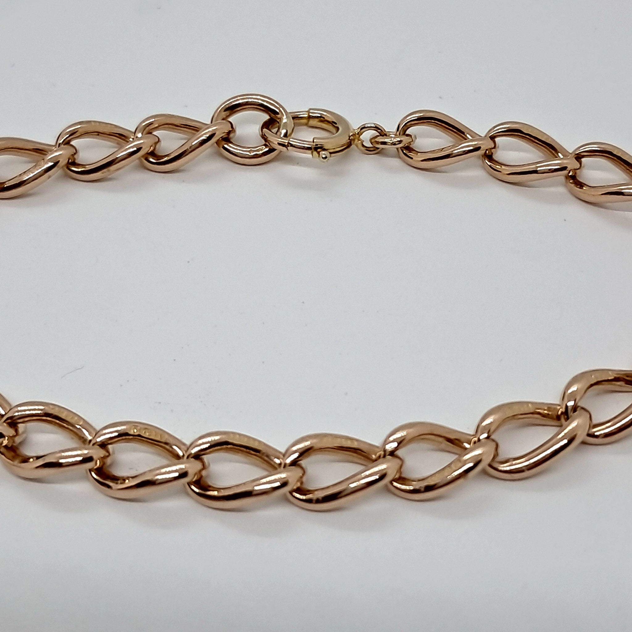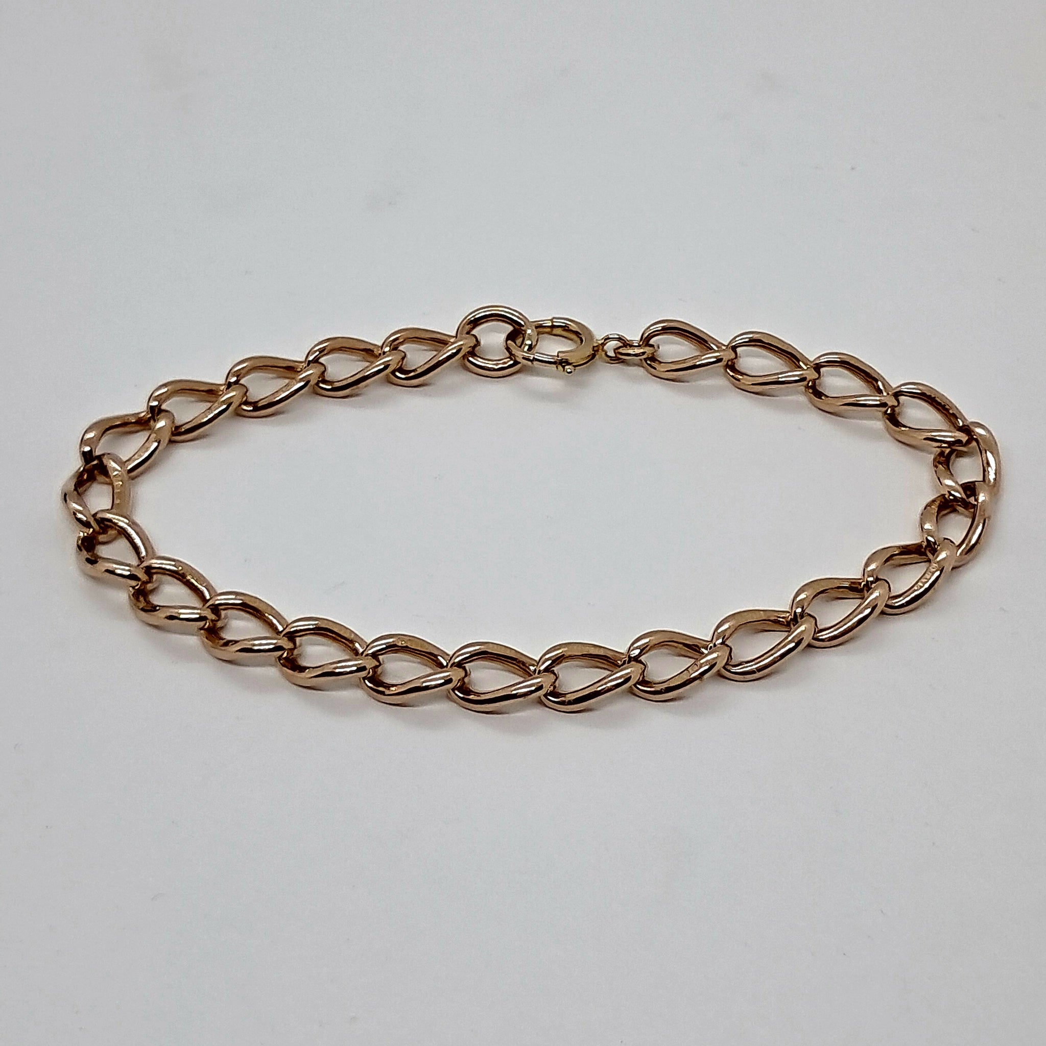 This is a wonderful bracelet which looks great worn alone or with other bracelets. It is made up of links with a twist,measures 19 cms in length and each of the links is marked for 9ct gold. Each link measures 8mm by 5mm. Weight 12.2g c1910