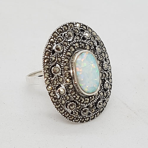 Sterling Silver Opal and Marcasite Dress Ring![]()  - Regular price